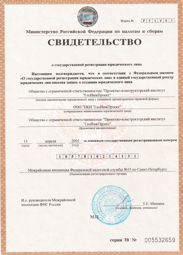 | Полное наименование | Общество с ограниченной ответственностью «Проектно-конструкторский институт «ГеоИнжПроект» |